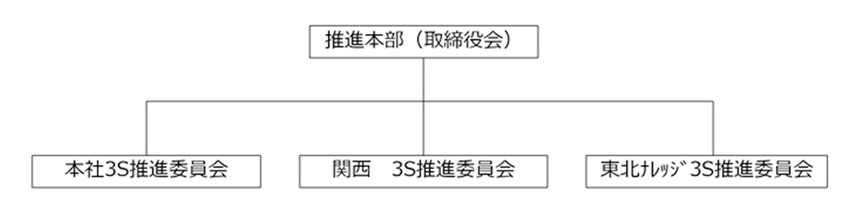 以董事会为总部,分别在总部工厂、关西工厂、知识园・东北工厂的3个据点分别设置了推进委员会。