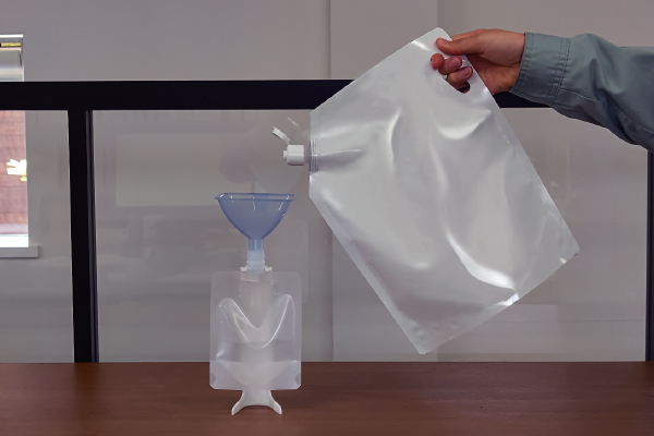 在ASKA公司、我们正在推进产品开发,以便吸嘴袋本身可以用作容器,并且作为其中之一我们正在开展提供可以『连接到泵』的吸嘴产品。