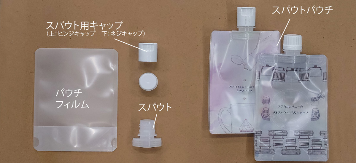 「吸嘴袋」是指将作为内容物出水口的「喷口」和容器的「袋子」组合在一起的产品,其中的出水口和盖子由Aska公司开发和制造。