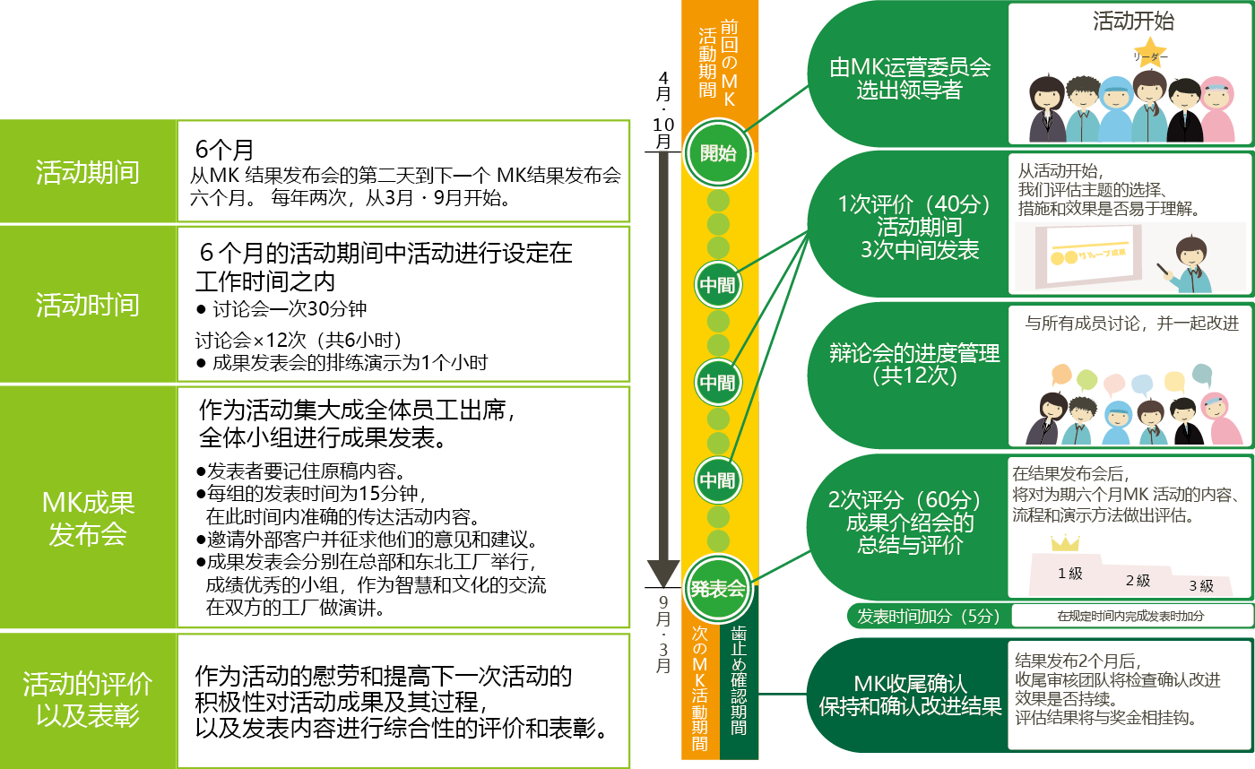 之后,作为品质管理活动的QC小组活动,以本公司独有命名的『MK活动』,从不间断地继续进行着。
