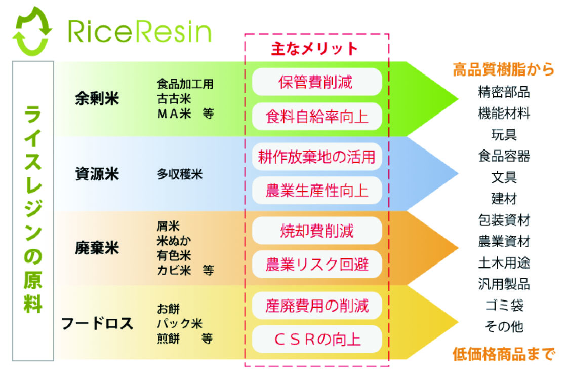 ・大米树脂®,是以不可食用的大米、非食用的「资源大米」等为原料的生物质塑料。