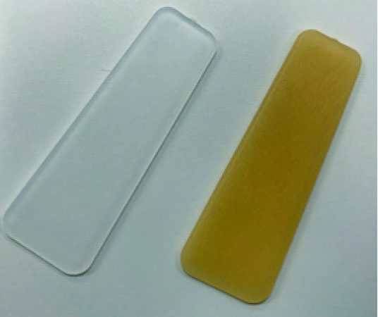 左边PP(100%)。 右边 PP(25:约80%) 大米树脂(5:约16%)的百分比混合而成。(米率(生物质率):约11% )